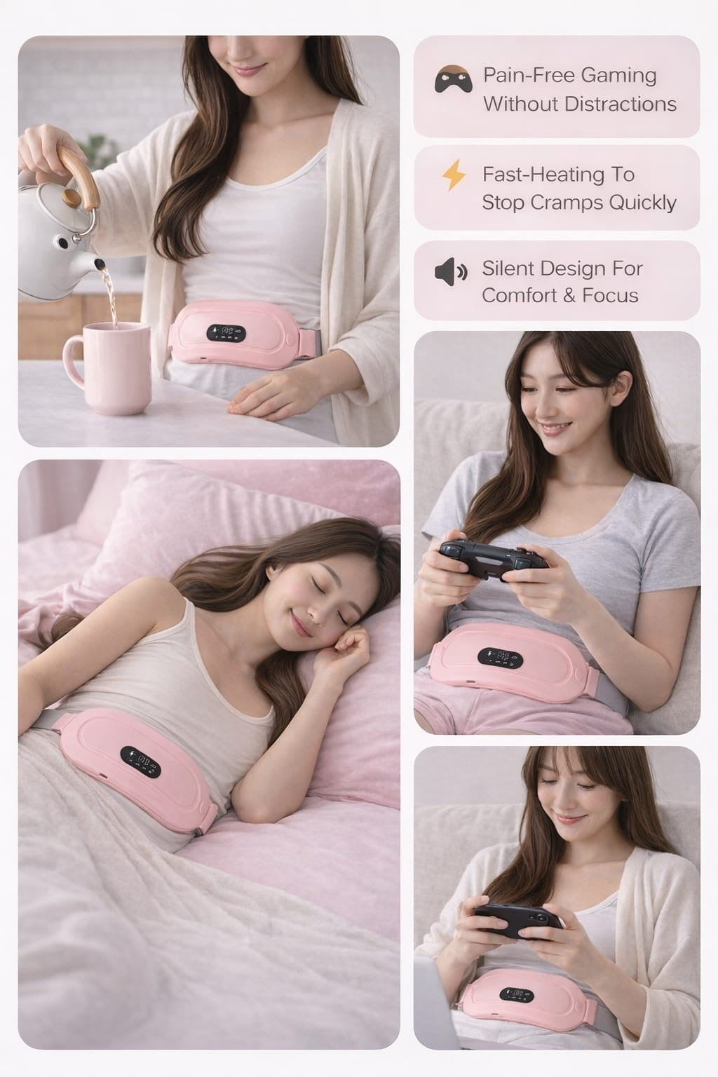 - 🌸 Instant pain relief – Helps reduce period cramps, back pain etc.